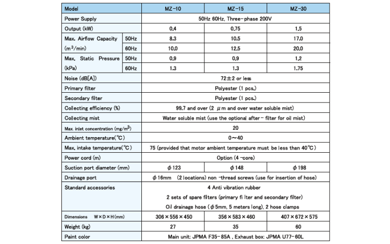 Filter type oilmist collector. MZ series can save energy and it is easy maintenance no tools needed.