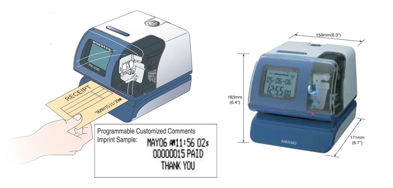 The PIX-200 is an all in one electronic time recorder/stamp designed for modern society. This top-of-the-line product can be equipped with Amano PIX series functions that you need at a reasonable price.