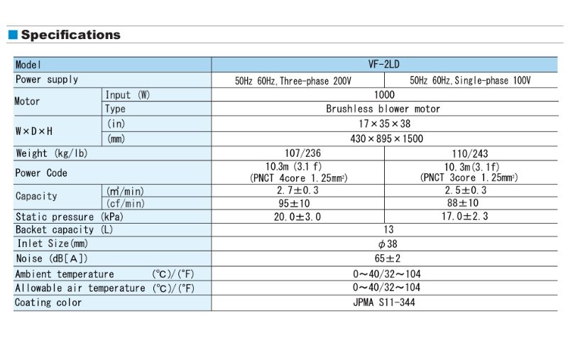 Dust explosion pressure diffusion type dust collector. VF-2LD is small output generates high-volume airflow and high-pressure. Ideal for toner powder